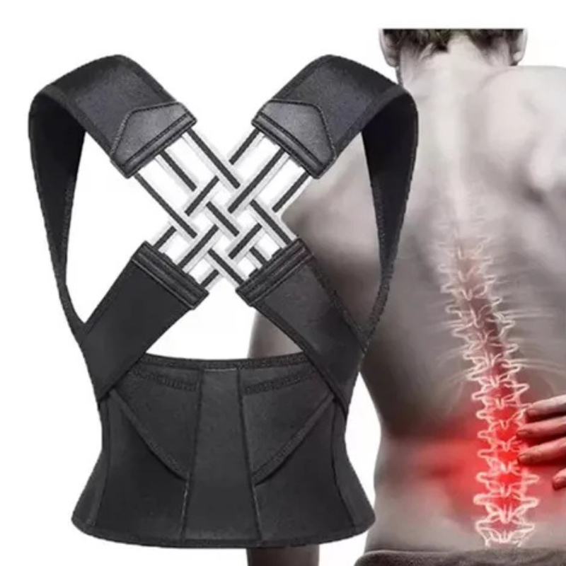 Feito em Nylon + SBR de alta resistência, com tiras ajustáveis e design ergonômico que puxa os ombros e sustenta a parte superior das costas sem travar movimentos.
